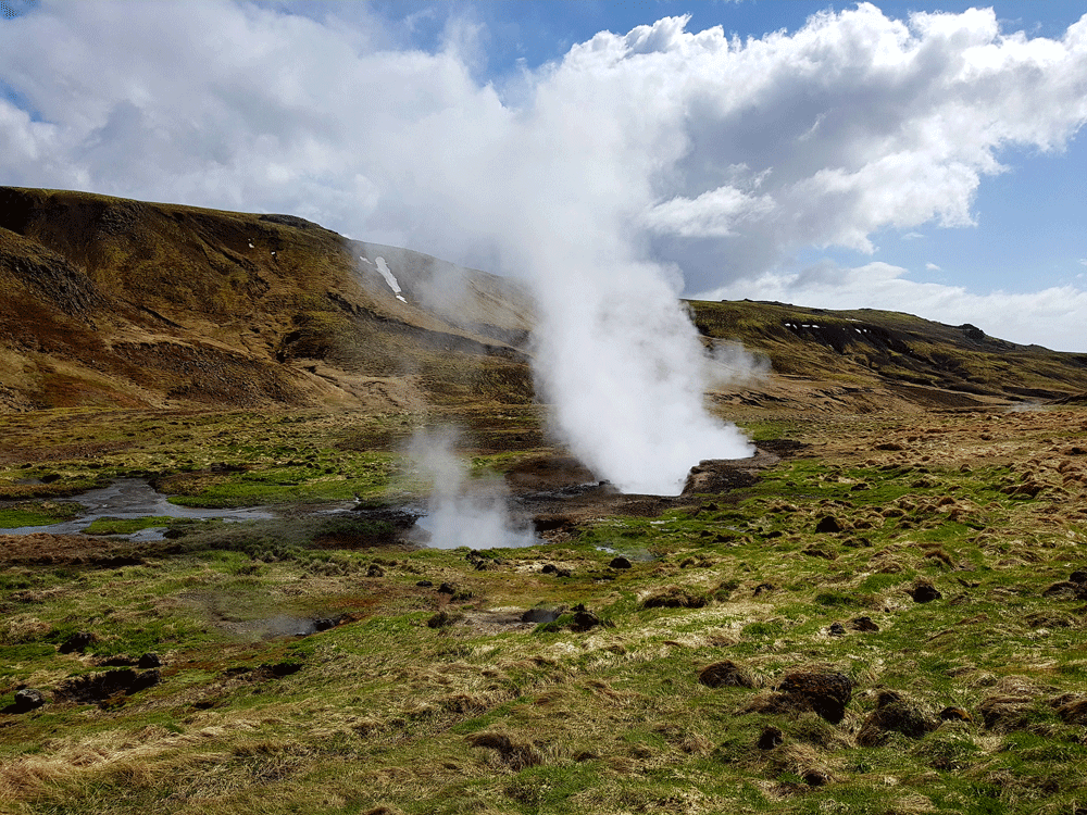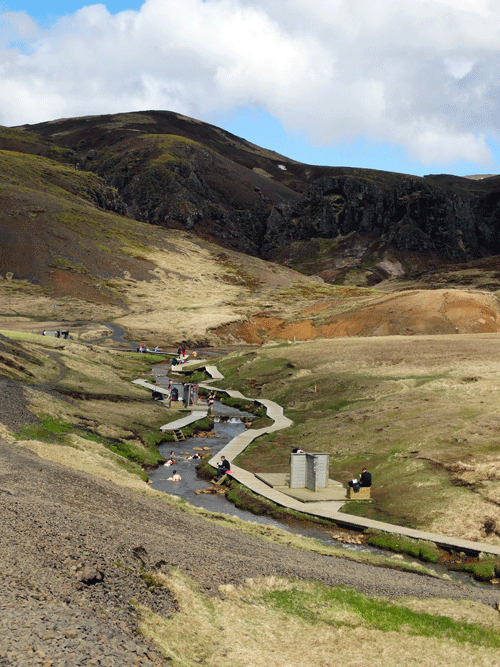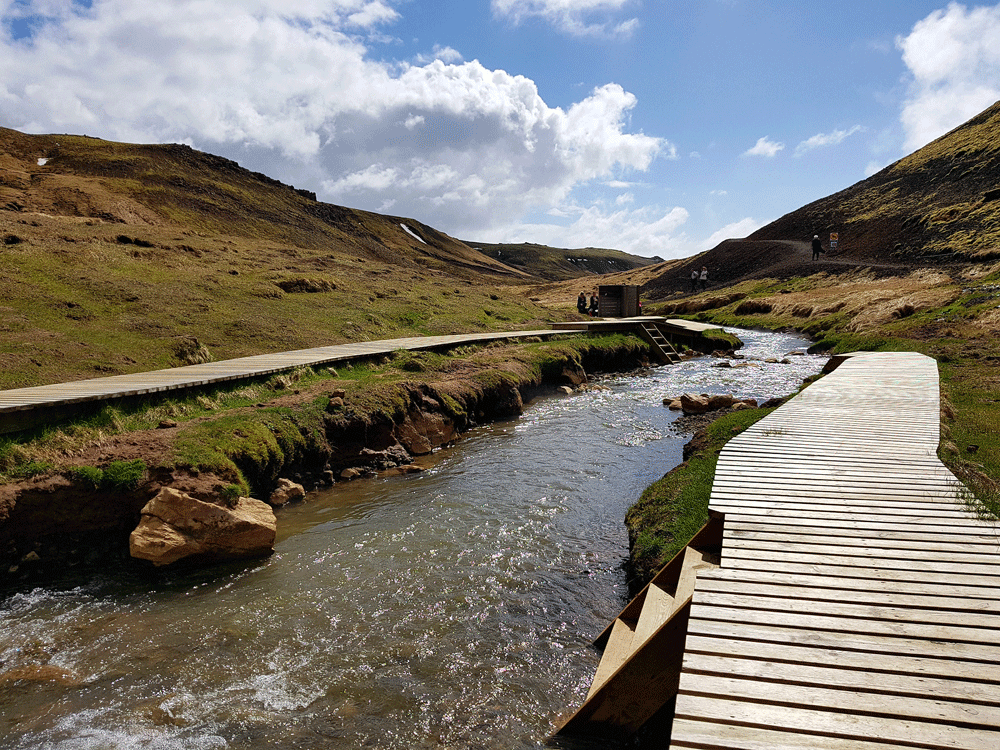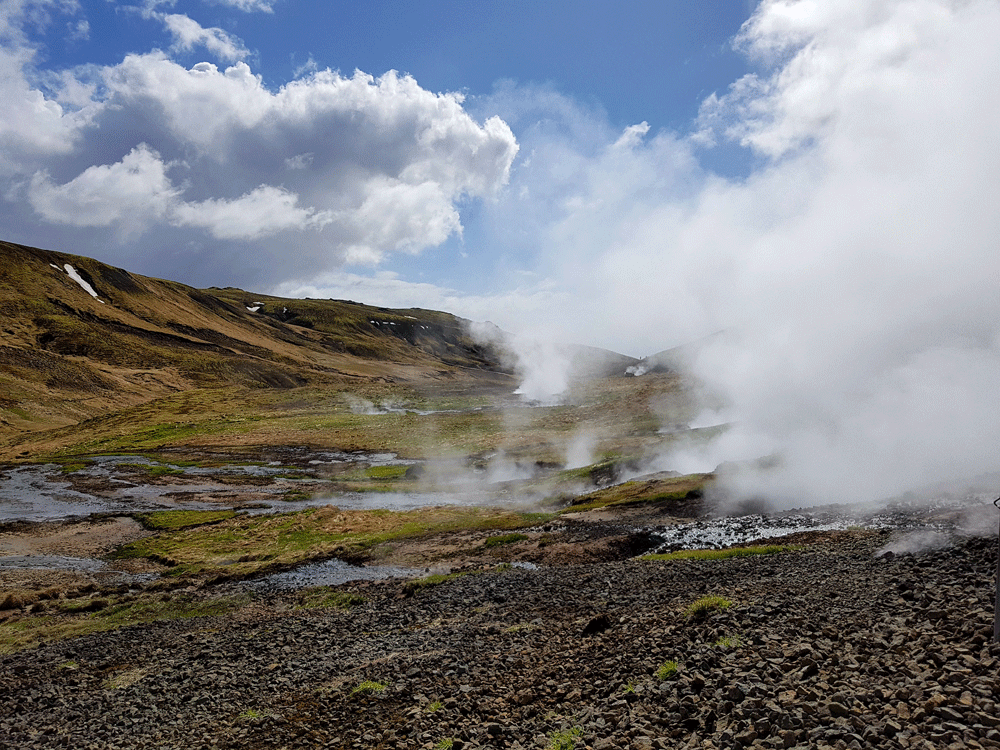 De prachtige uitzichten, de gekleurde bergen en alle geothermische verschijnselen. De kokende modderpoelen, stoom wat zomaar uit de grond komt. Dikke mist waar je soms doorheen loopt terwijl de wereld voor enkele secondes volledig wit kleurt. Het melkblauwe water van de meertjes wat zo mooi afsteekt met het groen van het mos. Een waterval die al kronkelend zijn weg naar beneden vindt en natuurlijk de warme rivier. Die zo uitnodigend is, dat je het wilt proberen, met wat voor weer dan ook. Even helemaal bijkomen in het warme water, genietend van de omgeving om je heen. Een echte IJslandse ervaring.
